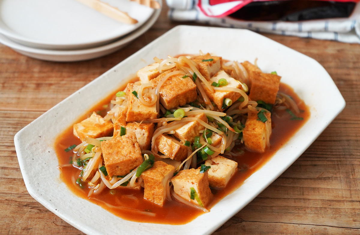 厚揚げともやしのとろ~り旨辛炒め