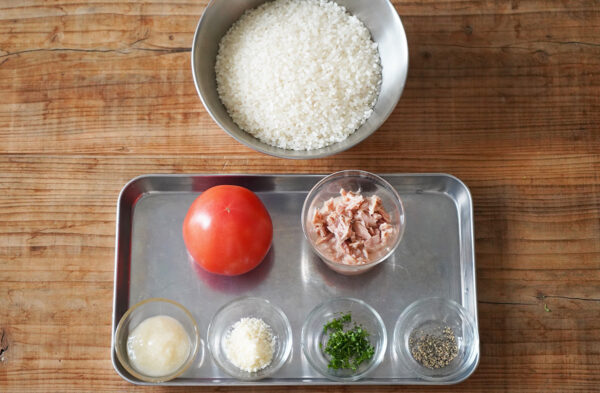 ツナと一緒にトマトを丸ごと炊き込んだ、旨みと栄養がぎゅっと詰まった炊き込みご飯です。塩糀を入れることでご飯にツヤが出てふっくらと炊き上がり、トマトの甘みが引き立ちます。