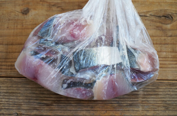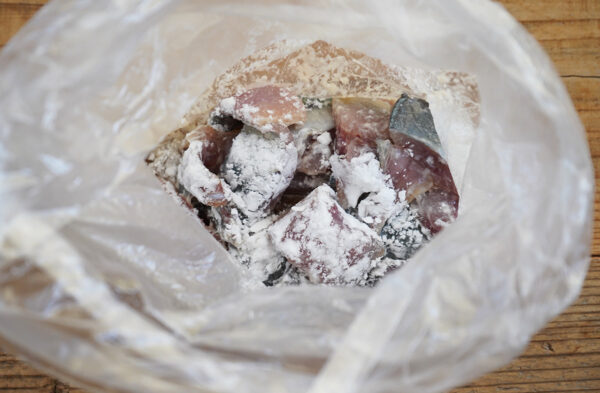 ポリ袋にアジと塩糀を入れてなじませ、15分置く。