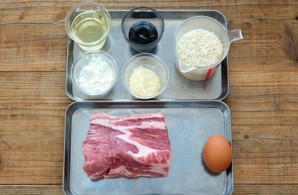 卵、薄力粉、献立いろいろみそを合わせて豚肉に絡めることで、簡単に衣をつけられます。