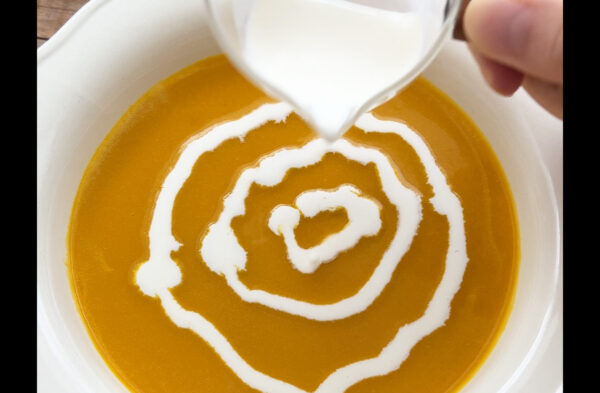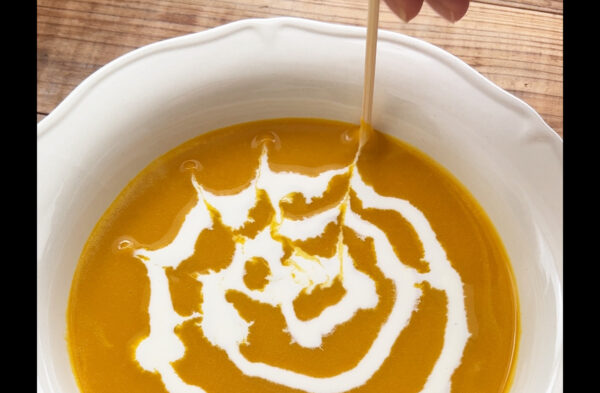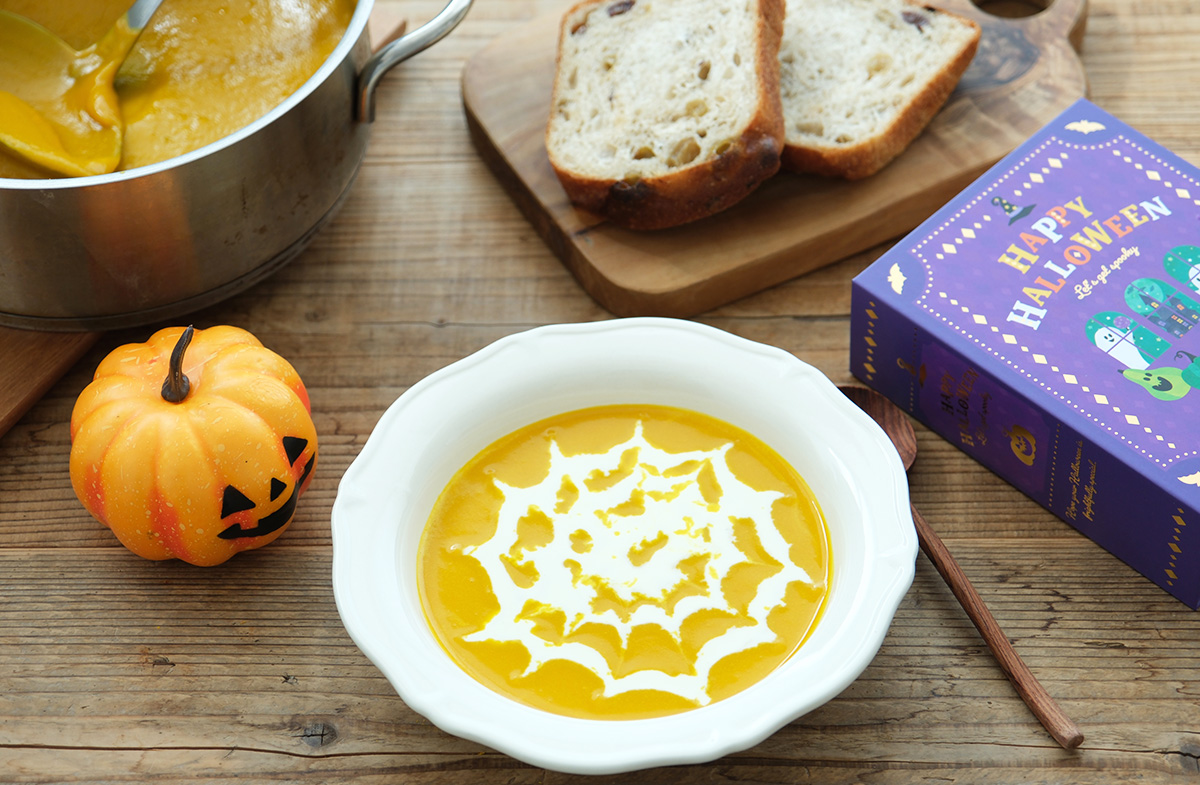 ハロウィンパーティーレシピ★塩糀パンプキンスープ 〜蜘蛛の巣デコレーション〜