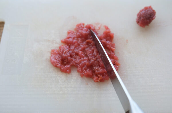 梅干しは種を取って包丁でたたき、Aと混ぜ合わせておく。