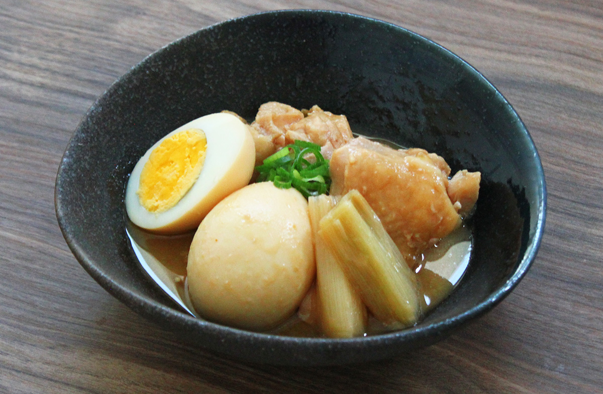 鶏モモ肉とゆで玉子をじっくり煮込んだおかずです。コク深い味わいで、ごはんはもちろん、お酒のおつまみにもおすすめです。