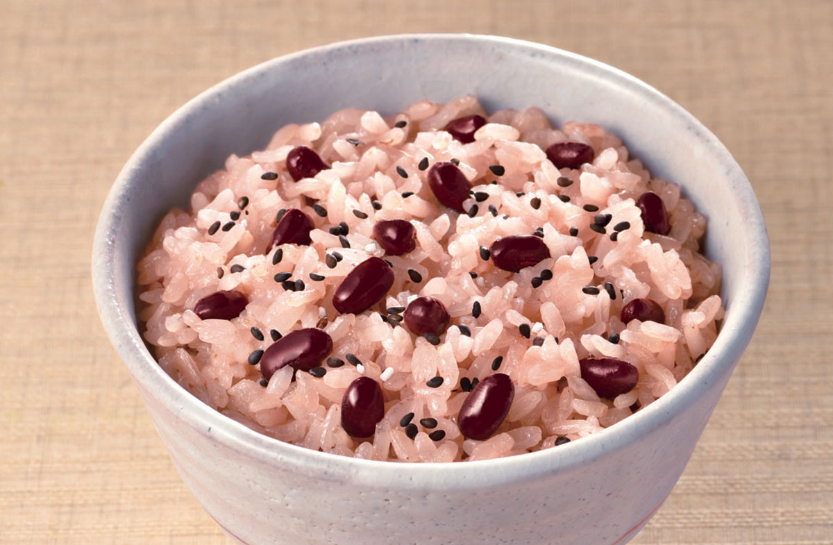 「らくらく炊きたて赤飯おこわ(2合用)」に白米またはもち米を1合を足して、3合で電子レンジで炊く方法です。電子レンジでも、ふっくらもちもちのおいしい赤飯おこわが楽しめます。