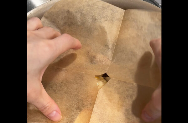 (2)にAを入れ、落とし蓋をして10分煮る。