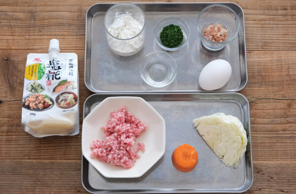 お子さんが野菜をたっぷり食べられるお好み焼きです。豚挽き肉と卵も使って、タンパク質もしっかり摂れます。塩糀のほんのり優しい塩気で味を調えています。