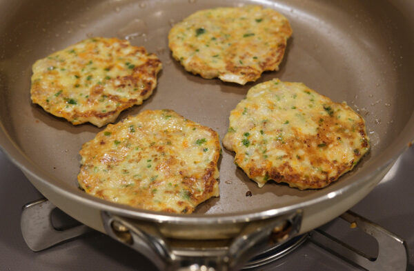 フライパンに油を熱し、(3)を8等分にして入れ、両面焼く。