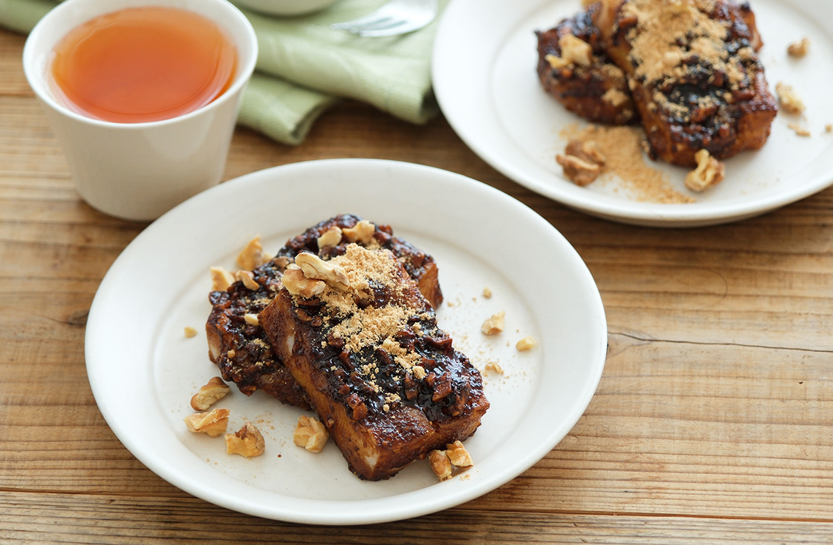 お餅を新たな味で楽しみましょう!献立いろいろみそにはちみつやきなこを合わせるだけで、絶品スイーツが完成。くるみの食感と香ばしさがアクセントになります。