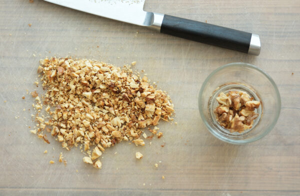 Aのくるみ(20g)は細かく刻み、Bのくるみ(5g)は粗く砕く。