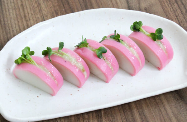 きゅうりを縦半分に切り、5mmの厚さで斜めに切る。