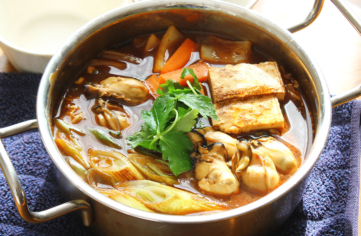 鍋にAを入れて熱し、沸騰したら、カキと三つ葉以外の具材を入れて煮る。