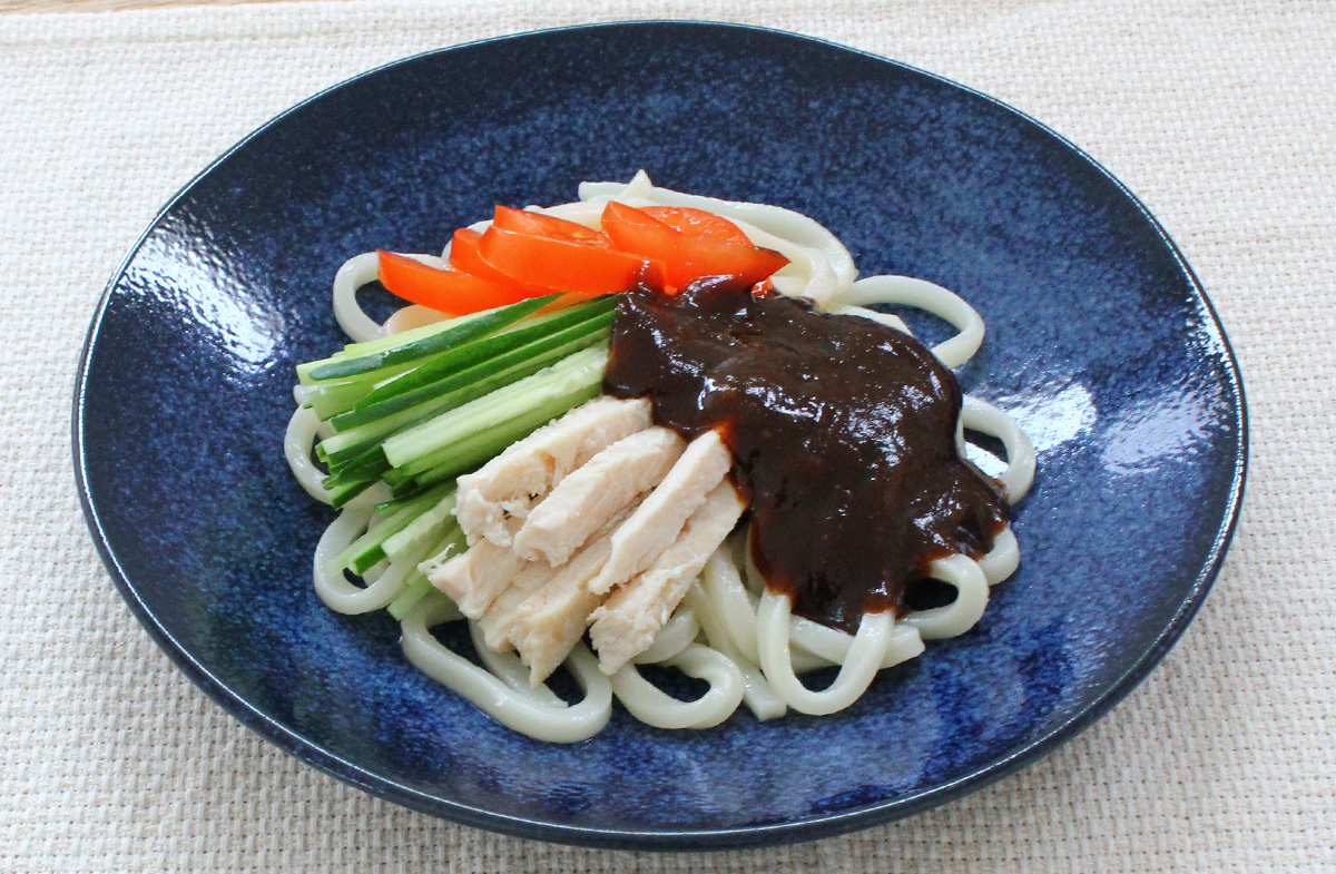 器にうどん、具材を盛り付け、献立いろいろ梅みそをかける。