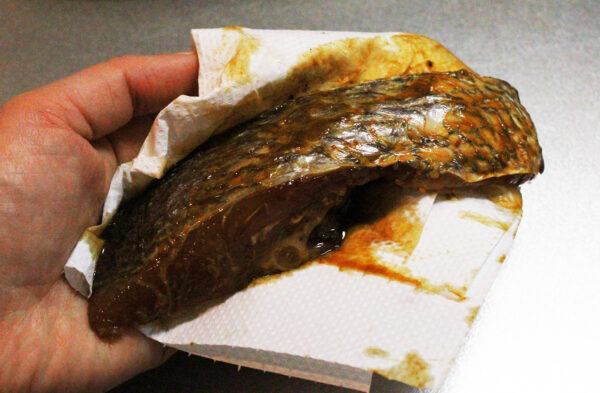 魚の表面のみそを軽く拭き取り、弱火でじっくりと焼く。