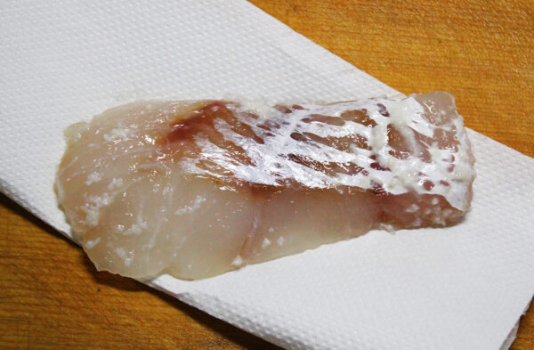 ラップを広げ、魚を置き、塩糀を両面に塗る。