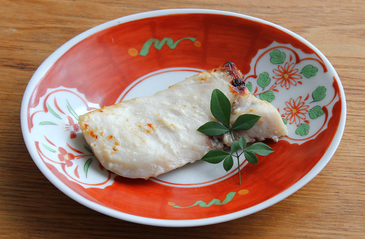 魚の表面の塩糀を軽く拭き取り、弱火でじっくりと焼く。