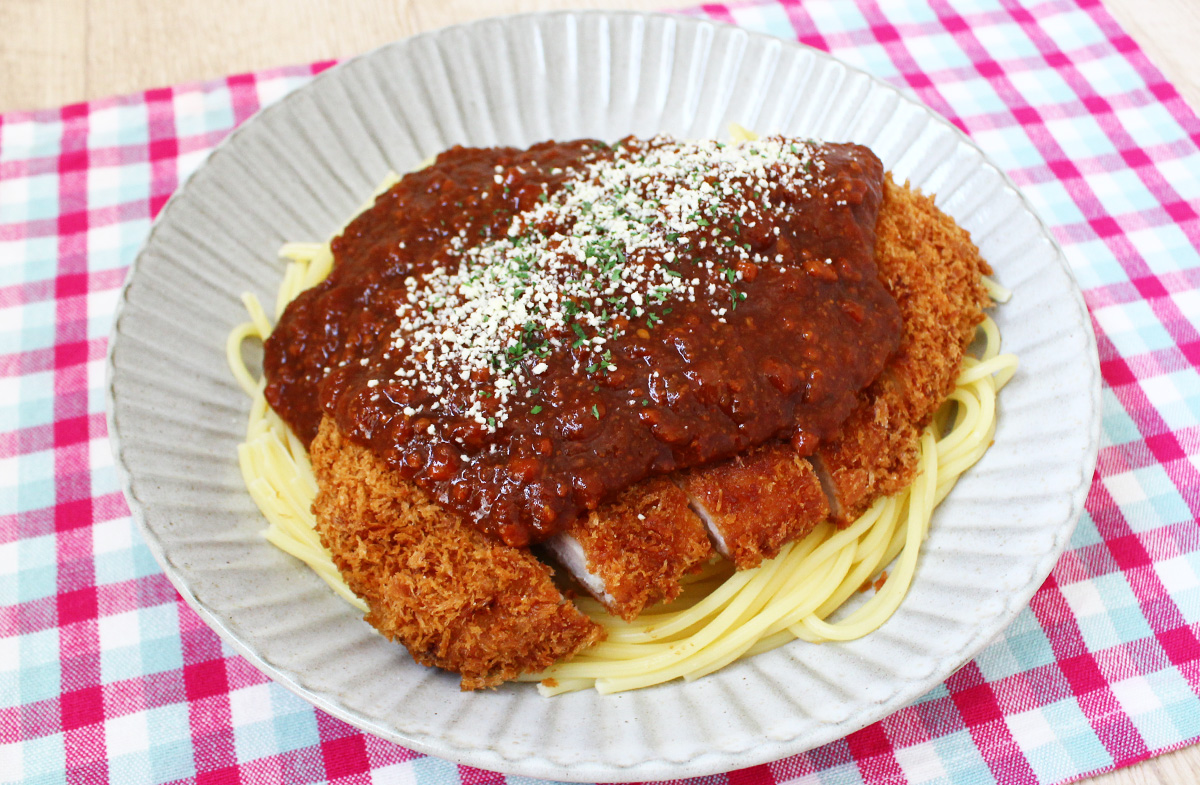 「パスタのまち」群馬県高崎で人気の豚カツをのせたボリューム満点のパスタ。献立みそでコク旨に仕上げる作り方をご紹介します。