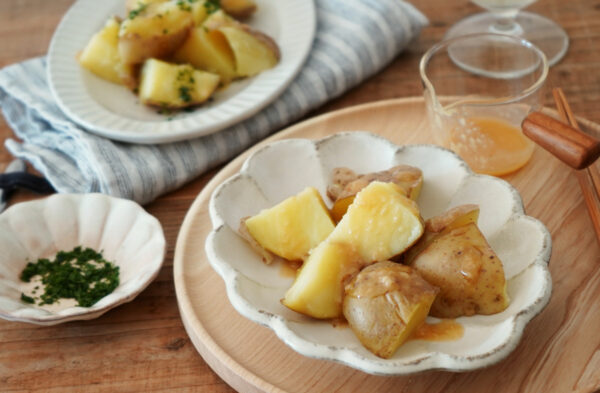 じゃがいもは皮をむいて食べやすい大きさに切り、ポリ袋に入れる。塩糀を加えてもみ込み、冷蔵庫で1時間置く。