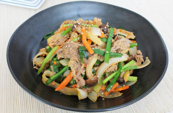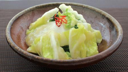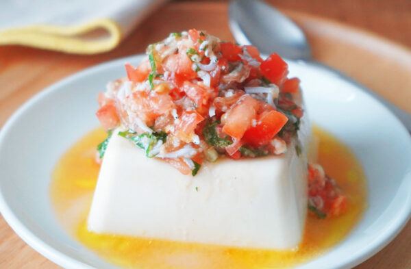 (1)を耐熱皿に移し、ふんわりとラップをかけ、電子レンジ(600W)で5分加熱する。