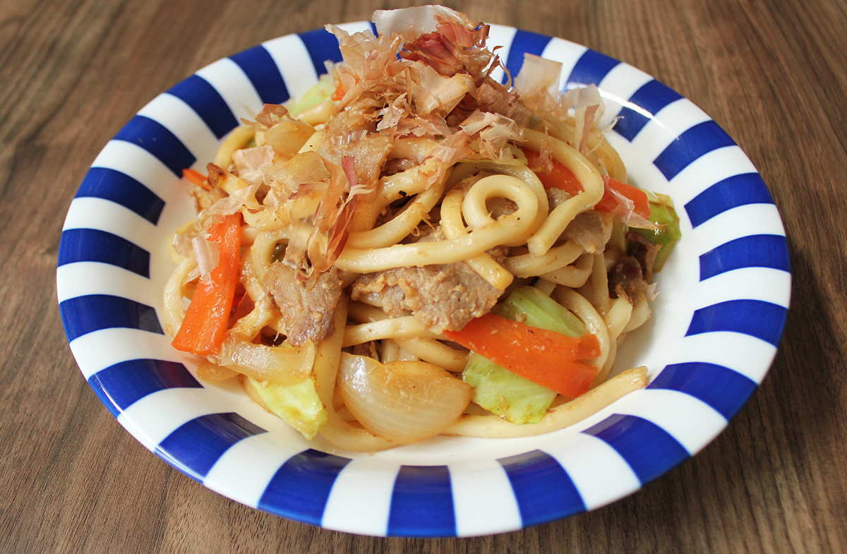 美味しさの秘訣は塩糀。お好みの具材とうどんを炒めるだけ。失敗のない美味しさです。