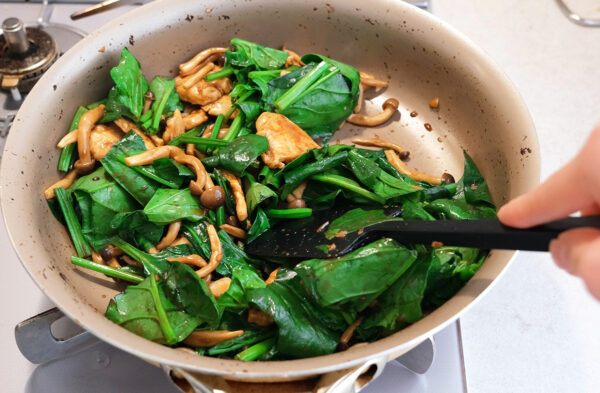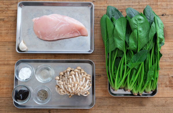 ほうれん草と鶏ムネ肉のガーリックみそ炒め