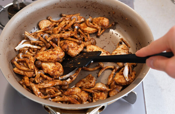 すぐとけるみそ 赤だしとしめじを入れて弱めの中火で5分炒める。