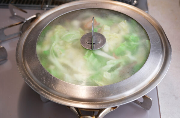 キャベツの水分が出たら除き、赤から鍋スティックを入れて全体になじませる。