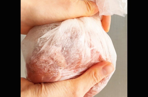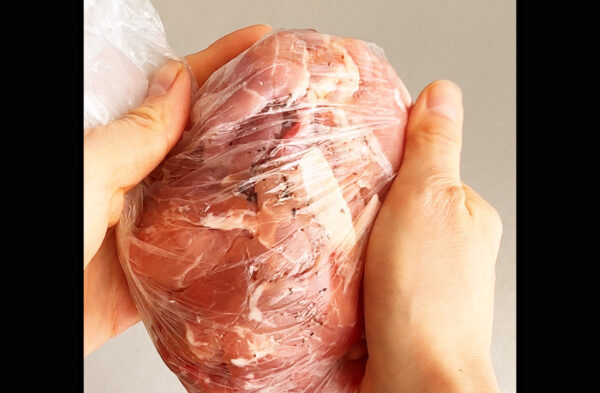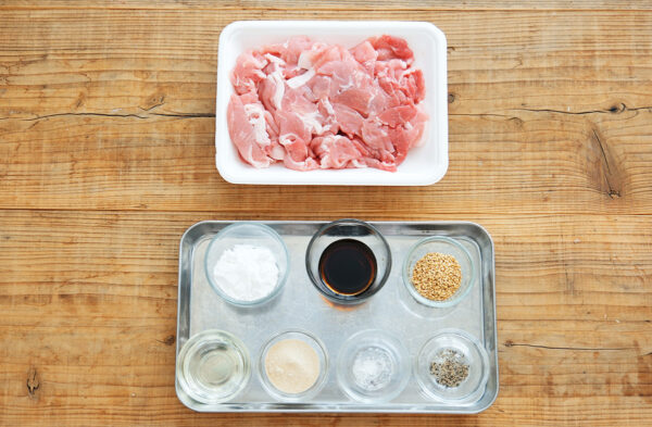 ポリ袋に豚肉、Aを入れて全体にもみ込む。