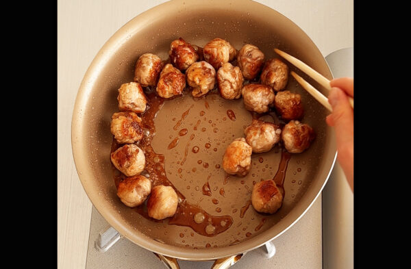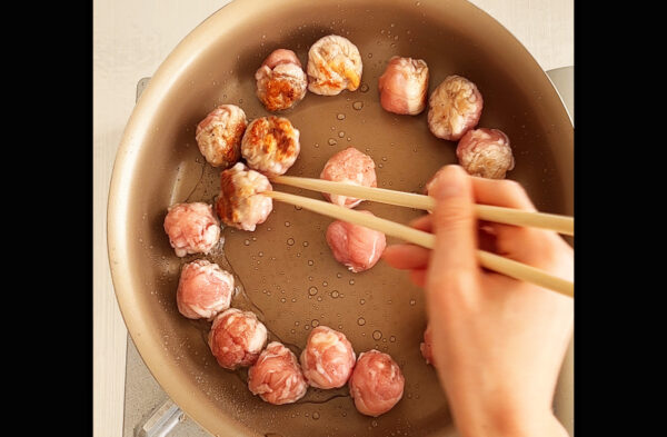 片栗粉を加えてさらにもみ込み、一口大に丸める。