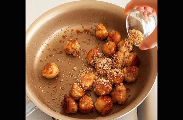 火を止め、白ごまを入れてさっと混ぜ合わせる。