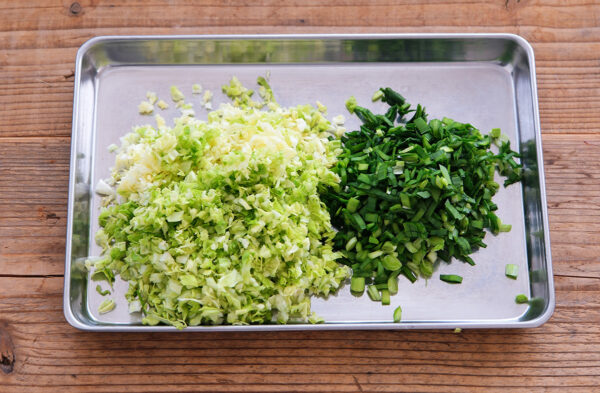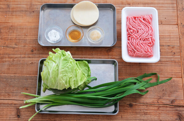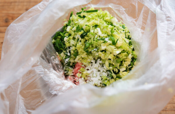 野菜とお肉の旨みたっぷりの餃子は、野菜嫌いのお子さんにもおすすめ。包まないので調理に時間がかからないのも嬉しいポイント!ポリ袋から餡を絞り出せば手が汚れません。