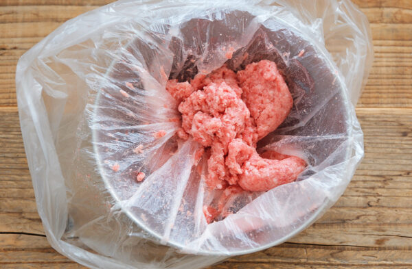 ポリ袋に豚挽き肉と塩糀を入れてよく混ぜる。