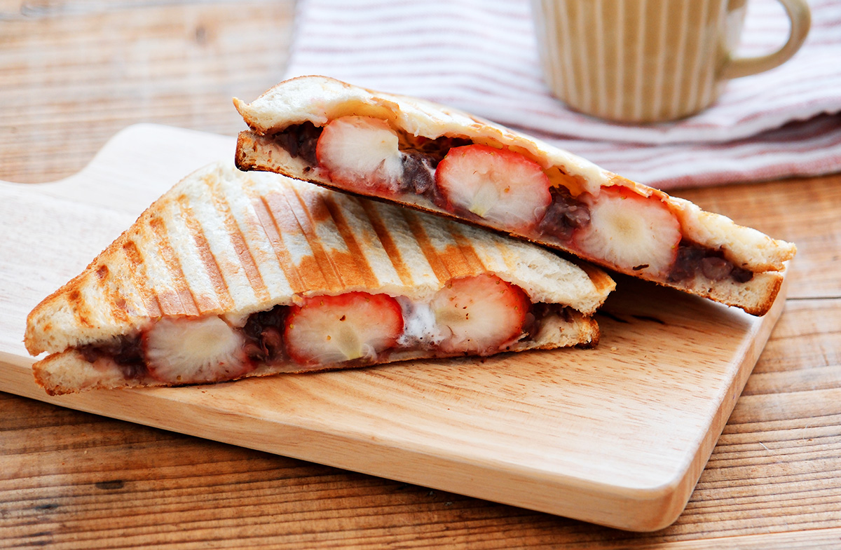 甘酸っぱいいちごと、とろけるマシュマロが入った、簡単なのに特別感のあるおやつ。塩糀を使って作る甘じょっぱいあんこはクセになる味わいです。