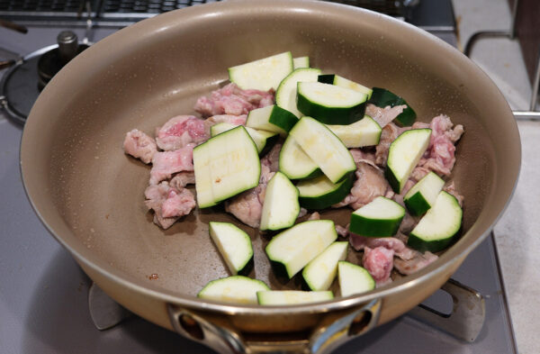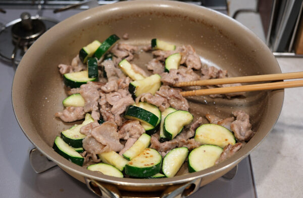 全体に火が通ったら、塩糀、レモン果汁を入れて混ぜる。