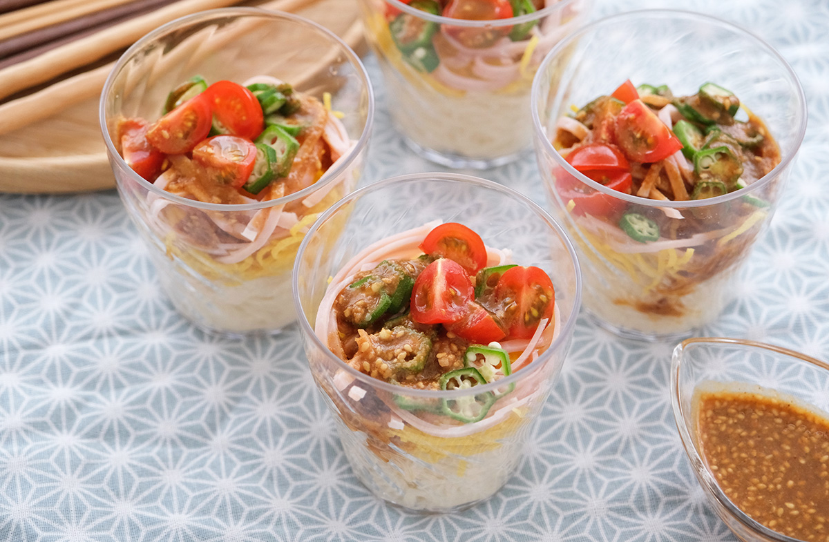 七夕にぴったりな簡単でかわいらしい1品!カップにそうめんと具材を盛りつける工程は、お子さんと一緒に楽しめます。