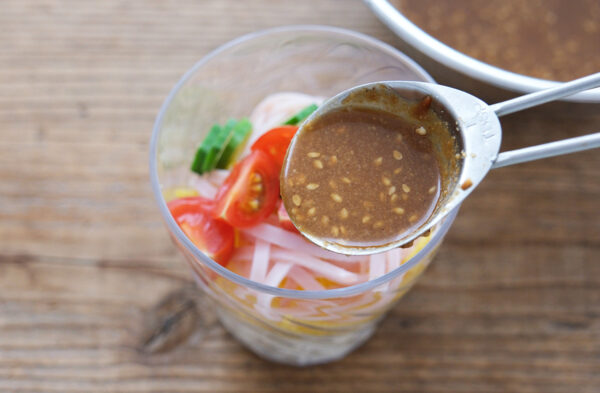 幅広い世代に人気の絶品ごまみそだれ。大人はラー油をかけてピリ辛にアレンジするのもオススメです◎