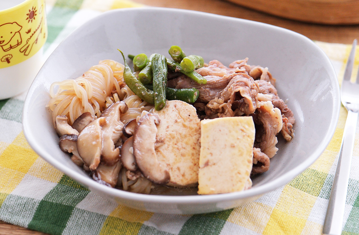 塩糀と無添加国産しょうゆで味付けした肉豆腐は、甘みも感じる柔らかい味わいでお子さんにもぴったり。豆腐やこんにゃくから出る水分をそのまま活用するため、豆腐の水切りが不要なのも嬉しいポイントです。
