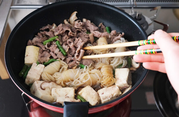 結び糸こんにゃくは、あく抜き不要のものを使用すると時短になります。
