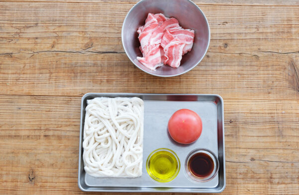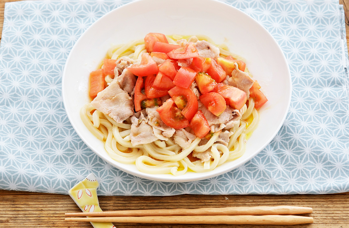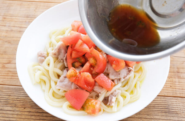 レンチンだけ!国産だし醤油で♪ぶっかけ肉トマトうどん