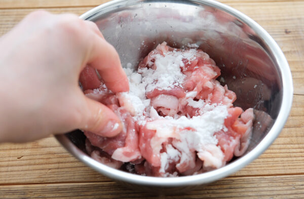 豚こま肉に塩糀をなじませることで柔らかく仕上がり、旨みもUPします。