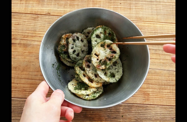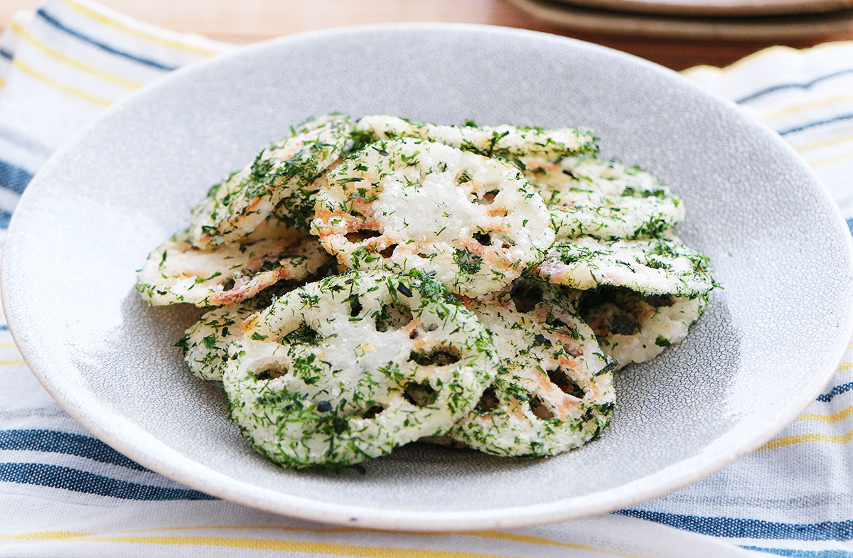 旬の食材「れんこん」を使った、おつまみにも、おやつにもなるお手軽レシピ。