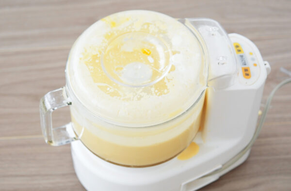 オーブンを180℃に予熱しておく。材料をすべてミキサーに入れ、5分間混ぜる。