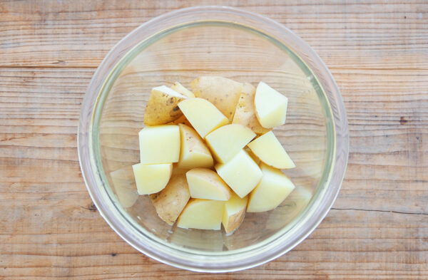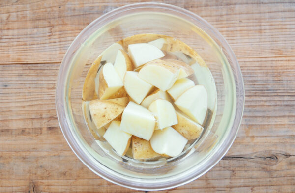 じゃがいを食べやすい大きさに切り、水にさらす。