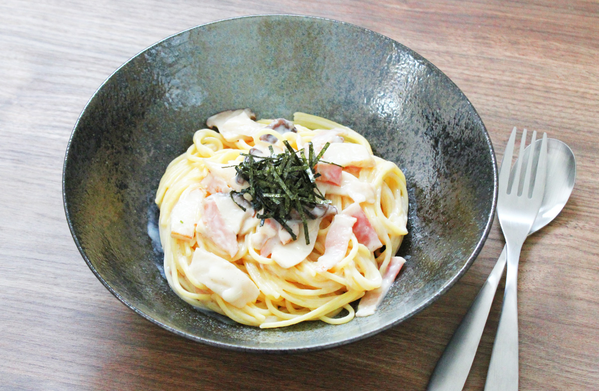 京料亭白だしと豆乳で!ベーコンとエリンギのあっさりクリームパスタ(スパゲッティ)