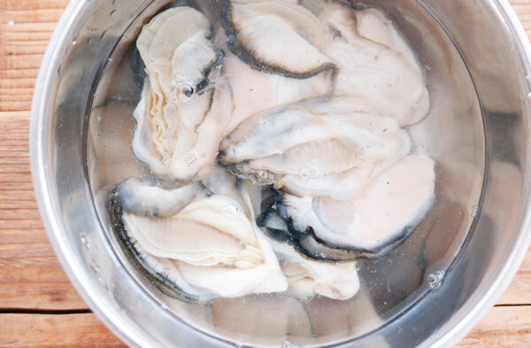 丁寧に下処理をすることで、牡蠣の臭みをとります。