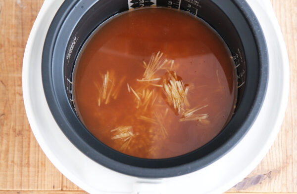 白米は洗って水気を切り、炊飯器に入れる。Aを加え、2合の目盛りまで水を入れて混ぜる。