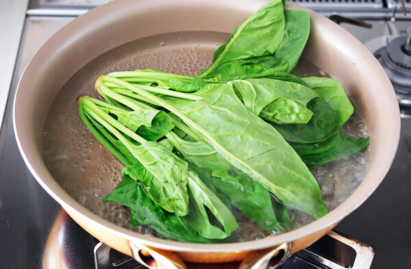 ほうれん草は塩少々(分量外)を加えた熱湯でゆで、冷水にさらして水気を切る。