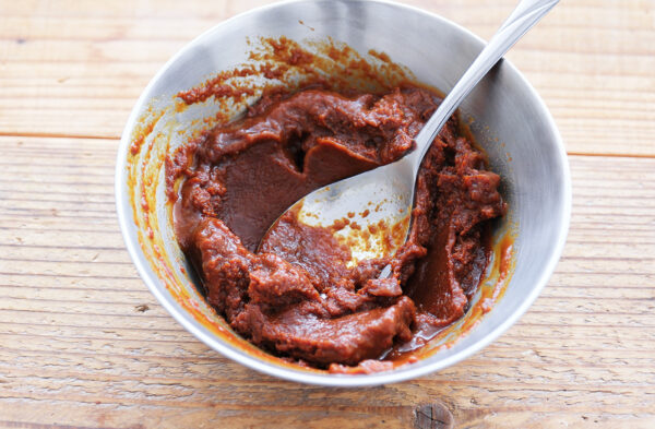 Aと水を加え、弱めの中火で5分を目安に、汁気がなくなるまで煮る。