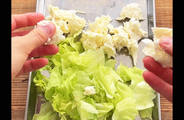 レタスとモッツァレラチーズは食べやすい大きさにちぎる。