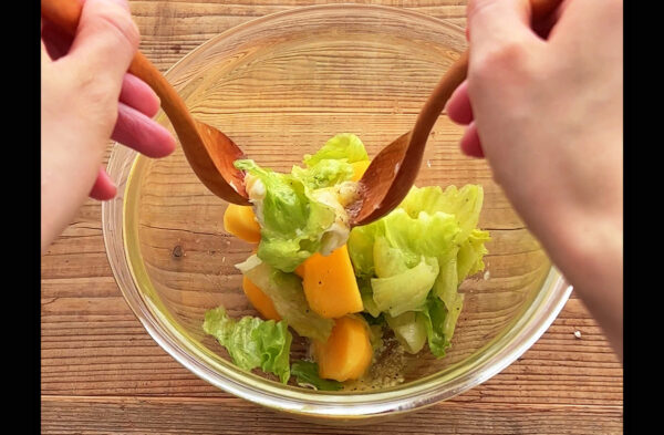 柿、レタス、モッツァレラチーズを加えて混ぜ合わせる。