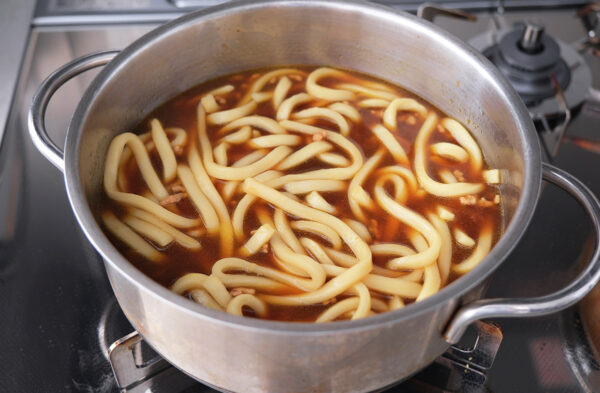 厳選国産生赤だしとカレールウを加えて溶かし、うどんを入れて2分煮る。